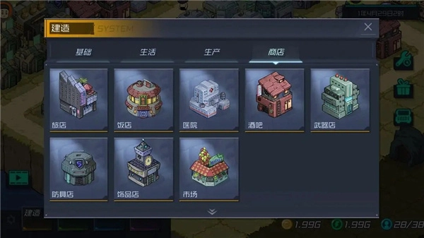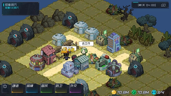 3、投入资源学习科技,解锁高级建筑,高效工具和特殊技能,去推动小镇从简陋走向繁华,提升游戏深度。