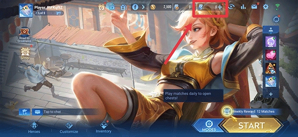 1、点击游戏首界面上方的点券按钮。