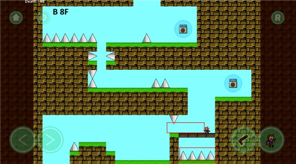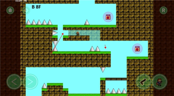 6、在边缘起跳,一直向前跑,后面有尖刺追来,来到我这个位置往回跳,前面也会有尖刺升起。