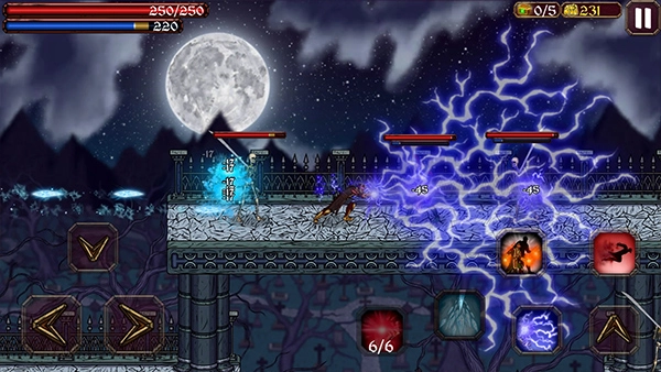 操作方式:进入游戏后,玩家可通过点击左下角的虚拟摇杆控制巫师移动,点击冲刺按钮可刺穿敌人造成伤害,点击火球键能释放火球法术。