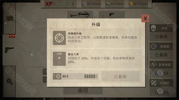 10、还可以给枪支武器进行升级,帮助玩家更快的进入到下个关卡;