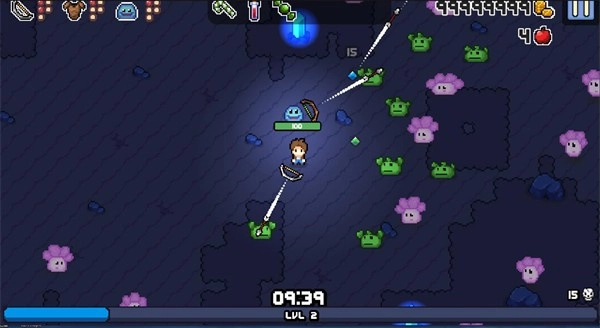 3、通过收集奖励,金币以及水果来升级自己的武器,并为自身角色和史莱姆同伴购买强大的神器和装备。