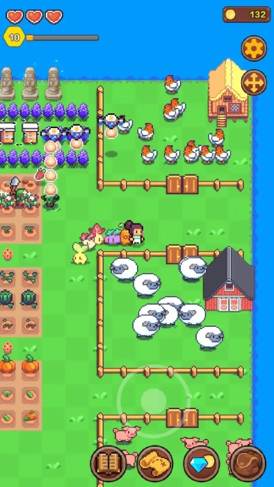 《海岛时光种田挖矿钻石版》是一款像素风休闲模拟游戏,以清新海岛为背景,融合农业种植与矿产挖掘两大核心玩法。游戏内有精灵助手可自动帮忙耕种和收获,种田部分包含播种、浇水等完整环节;挖矿机制支持深入地下探索,能获取各类稀有矿石。此外还有牧场系统,养殖可爱动物可定期收获资源;钓鱼玩法能解锁多种海洋生物。玩家可探索地面与洞穴场景,收集的资源还能用于合成高级物品。整体节奏轻松、氛围治愈,适合放松身心,多样的玩法也能带来持久的娱乐体验。
