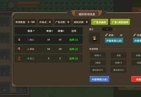 3、抽奖可以用广告点或者广告点和成就点抽武将,两个抽奖的区别在于单纯广告抽奖大概10广告点出1个S,如果是广告点+成就点抽10次大概出2-3个S,所以推荐单纯用广告点抽就行。