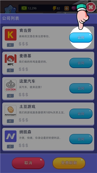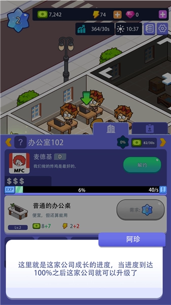 3、满足办公设施需要后可以与企业签约并增加声望,声望可以解锁更高级的设施。