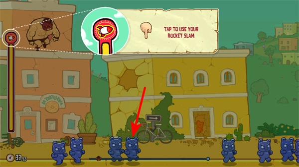 2、根据提示点击ROCKET SLAM技能道具,技能道具释放强力攻击,是快速清理敌人、推进关卡重要手段。