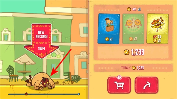 4、挑战结束后,查看NEW RECORD的成绩记录,了解本次挑战的成果,点击相关按钮可进入商店。