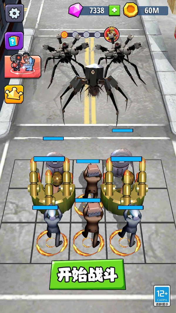 3、玩家可自由合成马桶人或监控人角色,将两个低阶角色合成为一个高阶角色,合成过程完全由玩家自主规划。