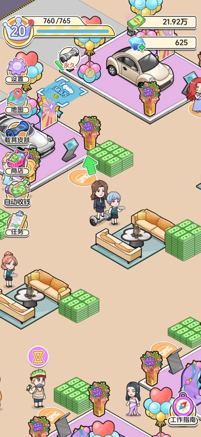 《模拟玩车展》是一款趣味十足的模拟经营游戏,核心玩法围绕车展展开——你的目标是售卖各类汽车,通过这个过程赚取更多金币。游戏初期,你会从一个不起眼的小展位开始经营,逐步签约酷炫新车来吸引源源不断的顾客,先赚到第一桶金,再一步步把车展的规模拓展到全球范围!游戏里没有繁琐复杂的操作指令,只需轻松点击就能体验乐趣。看着金币不断进账、展区越来越热闹繁华,那种满满的成就感简直要溢出来!
