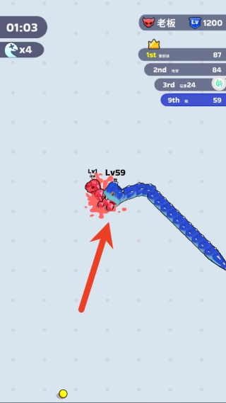 2、在保证蛇头不撞上其他蛇身或墙壁的前提下,尝试用身体包围其他玩家,迫使他们失误撞上你,从而吞噬其掉落的能量。