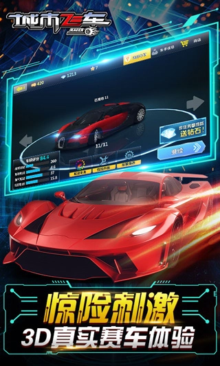1、3D引擎精心打造赛车模型,全球仅存的几辆限量款也在车库静候你带它驰骋。