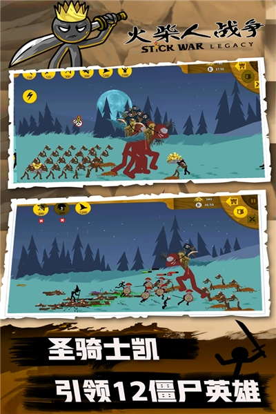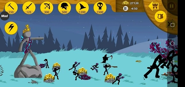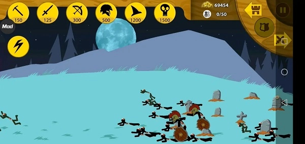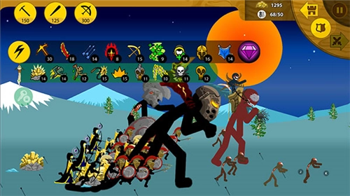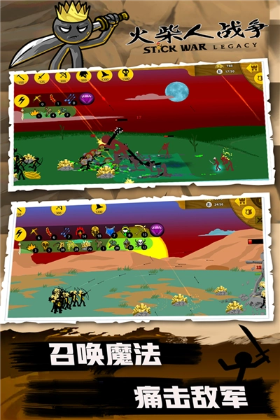 3、游戏中玩家将亲临激烈刺激的战场,指挥你的火柴人勇士进行作战,而且游戏中有着各种火柴人士兵可供训练。