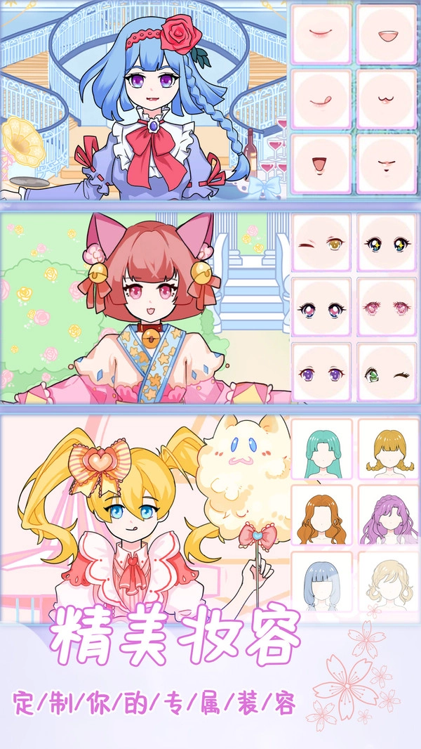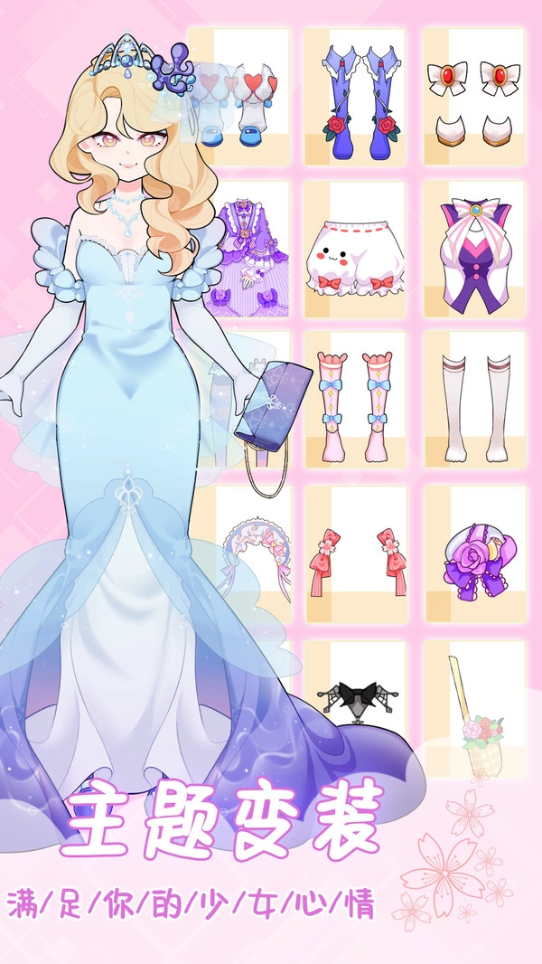 2、各种类型的服装可以进行试穿,玩家要找到完美的服装组合,快速设计出独特的美少女。