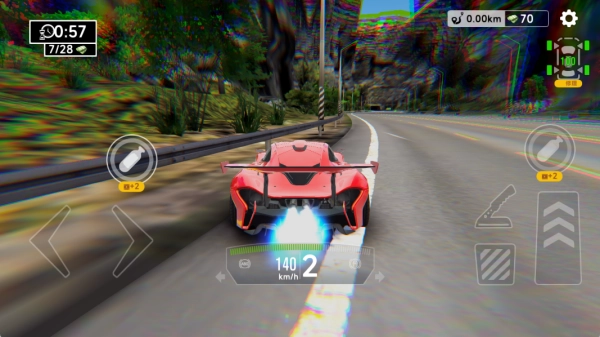 2、竞速路线为双向车道,会遭遇迎面而来的车辆,这些车辆的行驶速度与路线随机,玩家需精准把控车距。