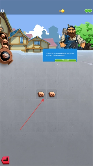 1、按照提示把矿石熔合起来,制作装备的部件,点击下一步就能继续操作。