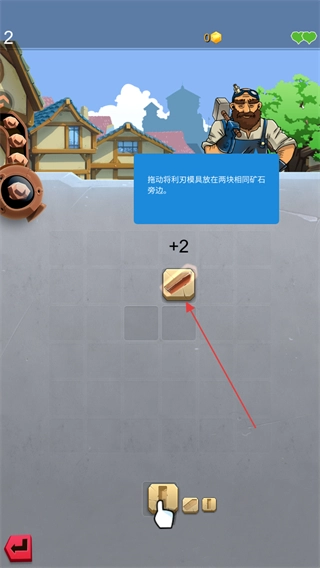 2、拖动利刃模具,放置在两块相同矿石旁边,进行道具制作。