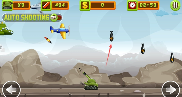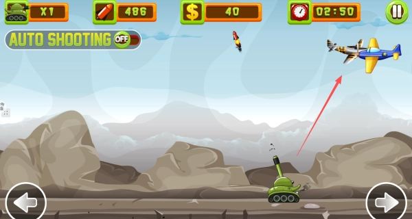 1、利用左右方向键操控坦克的移动,在屏幕的任意位置点击一下就能发射子弹。