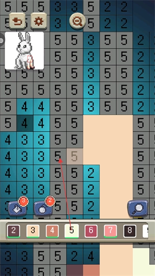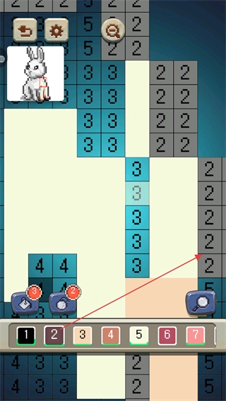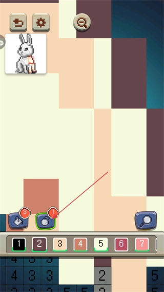 1、仔细观察数字方格图,按照上方与左侧给出的数字提示,点击相应颜色的方块来启动填涂操作。