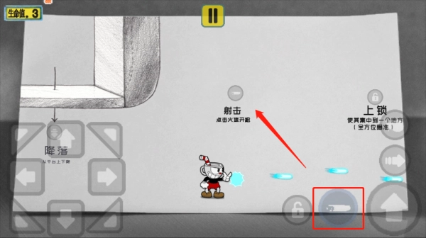 5、右边还会有技能攻击键,按键进行射击扫清障碍,或者将很多的敌人击杀;