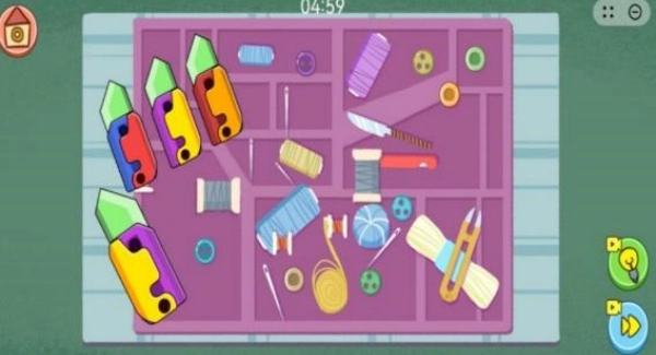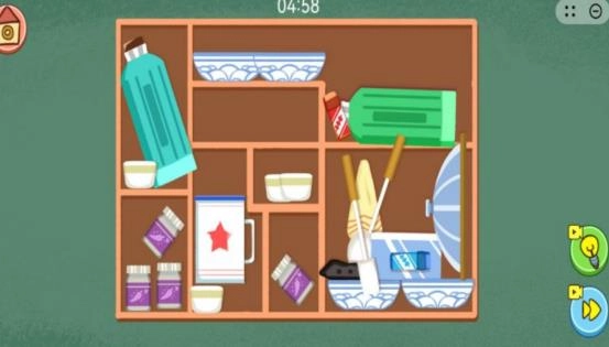 3.每一关都设计了一个独特的场景,场景中充满了各种凌乱的物品,玩家需要将这些物品按照类别或用途进行整理。