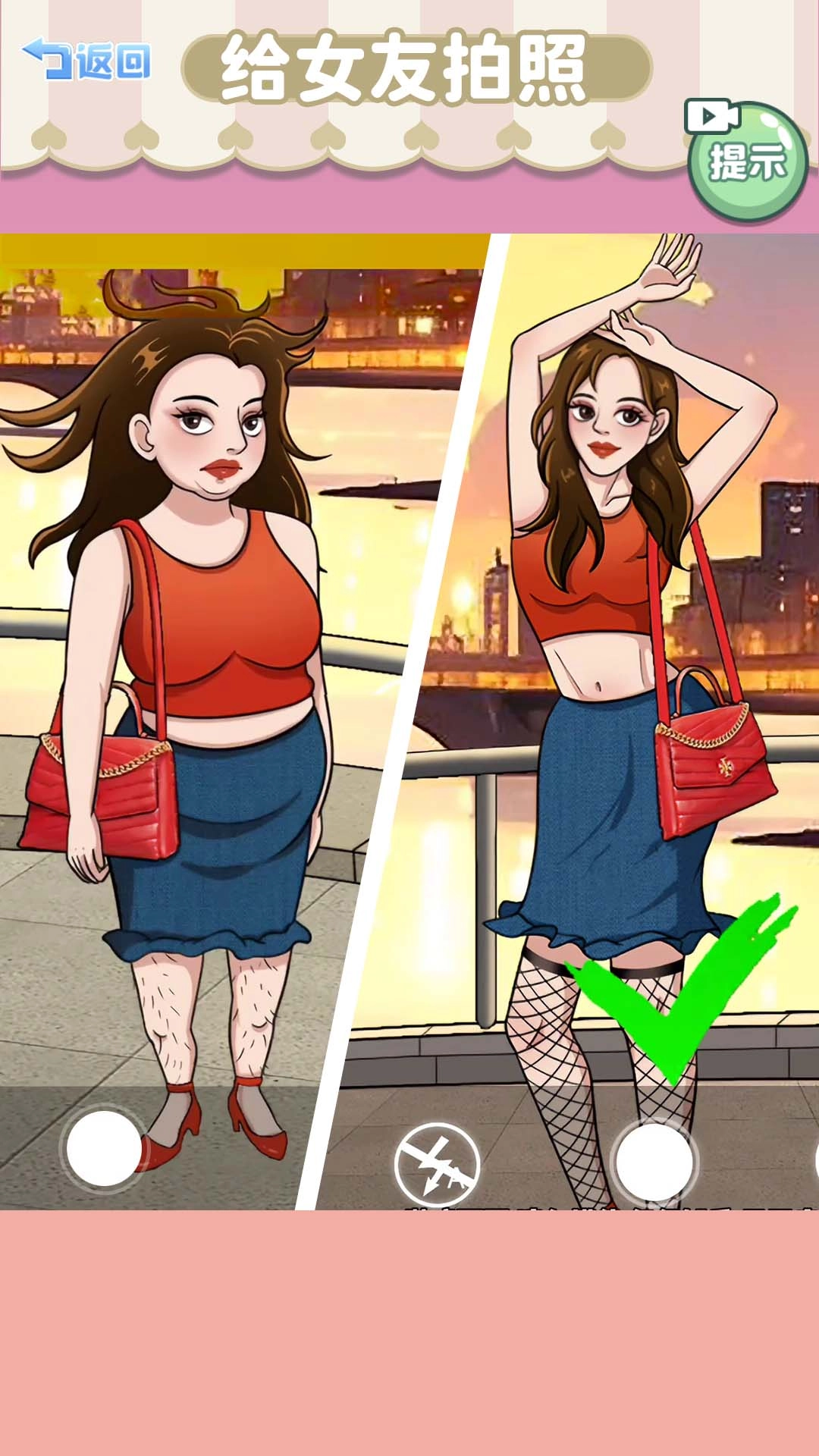 1、把拍出能让女友满意的照片作为核心目标,围绕生活里的各种场景展开,在游戏过程中感受为爱人定格美好瞬间的快乐,贴合人们日常的情感需要。