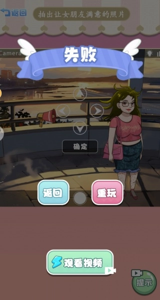 4、照片拍摄完成后,要是女友对照片不满意,游戏便会失败,不过可以重新开始游玩。