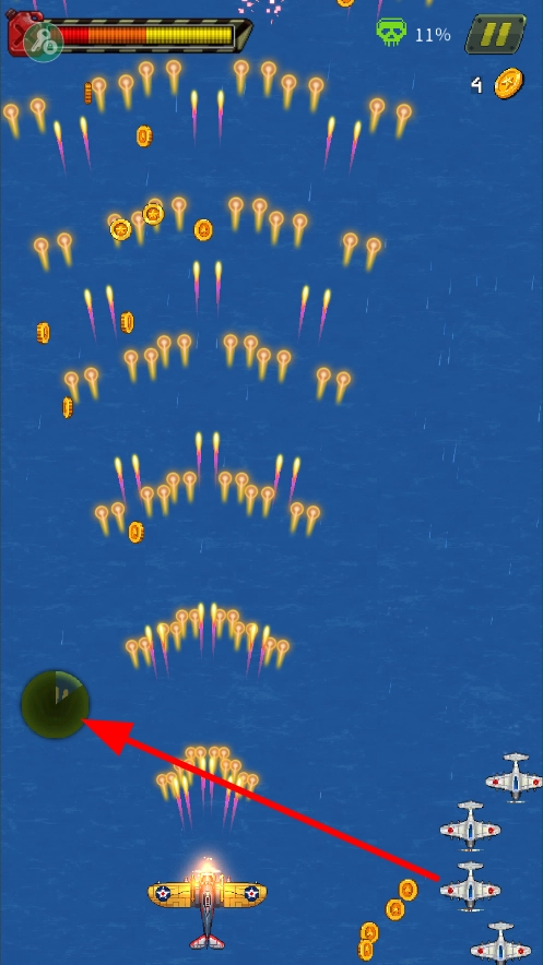 4、操控飞机移动到道具附近,拾取这些道具,道具能为飞机带来不同的增益效果,如增强火力、提升防御等,帮助玩家更好地完成战斗。