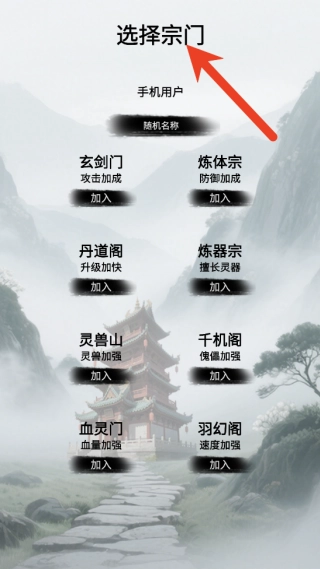 1、玩家需要创建自己的角色并选择宗门,随后进入游戏世界,在一处灵脉福地上出现宗门的根基,迈出修仙经营的第一步。