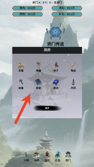 2、通过派遣弟子探索地图、完成剧情任务来收集灵石、木材与矿石等关键资源,并利用这些资源升级建筑、研习功法、招募拥有不同灵根资质