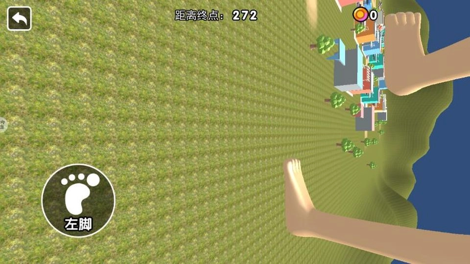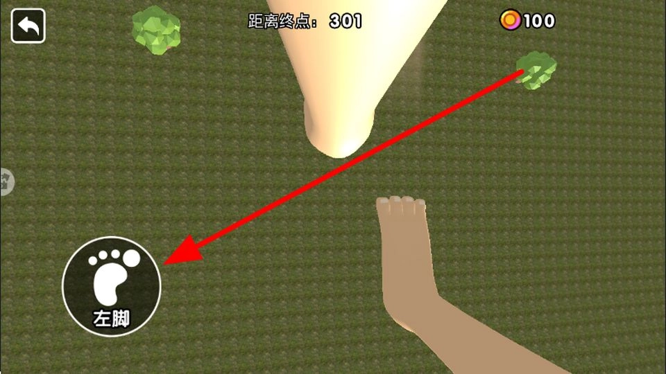 3、接着点击左脚按钮,操控左脚移动,与右脚配合,保持行进节奏,持续向终点方向前进,留意场景中物品,尽量获取。