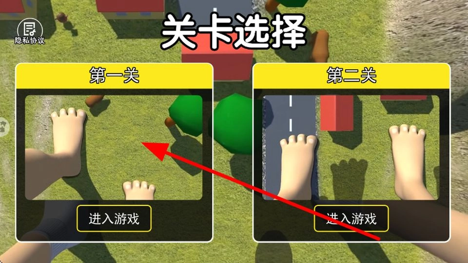 1、首先进入游戏,在关卡选择界面,点击第一关或第二关下方的进入按钮,挑选想要挑战的关卡,开启游戏进程。