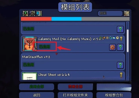 2、找到灾厄mod,然后将其设置为“启用”状态。