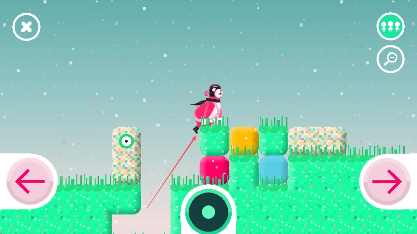 1、点击屏幕下方彩色圆球形状的按钮,挑选出和场景里相匹配的方块颜色与样式。