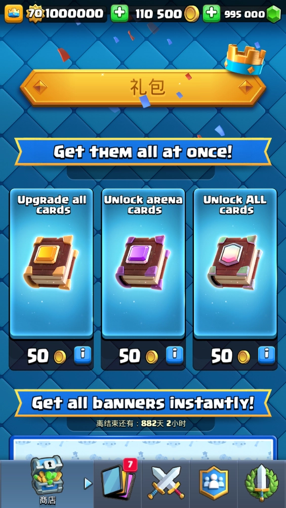 赢取宝箱来解锁奖励、收集强大的全新卡牌并升级已有卡牌