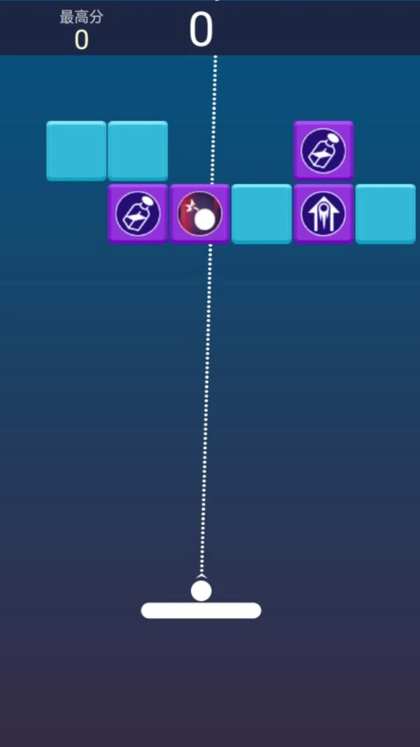 2、随将自己的小球弹射出去,让小球在方块之间来回反弹以消除方块。