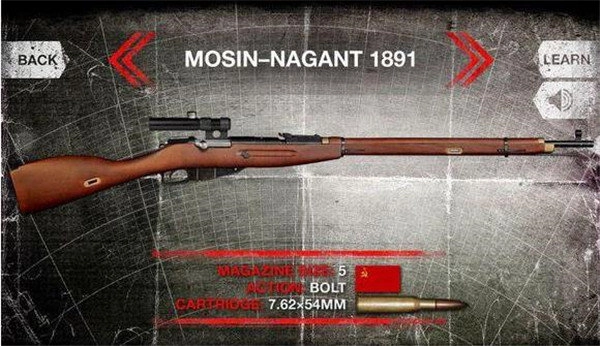 2、mosin-nagant 1891(莫辛-纳甘步枪)游戏里面可以加瞄准镜,刺刀,短枪身