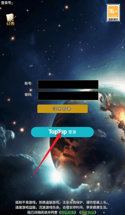 2、输入账号密码,然后登录即可开始享受放置乐趣