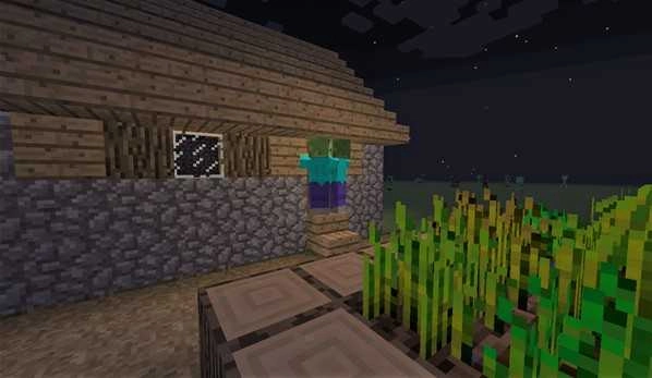 特别值得一提的是,僵尸可不仅仅会攻击村民们的房屋,有时他们也会试图对你所居住的房屋发动袭击,不过僵尸的碎门能力与难度直接挂钩,只有当难度设置为困难的时候,僵尸才有可能把木门打碎——而且不论什么难度,僵尸都不会把铁门打碎。