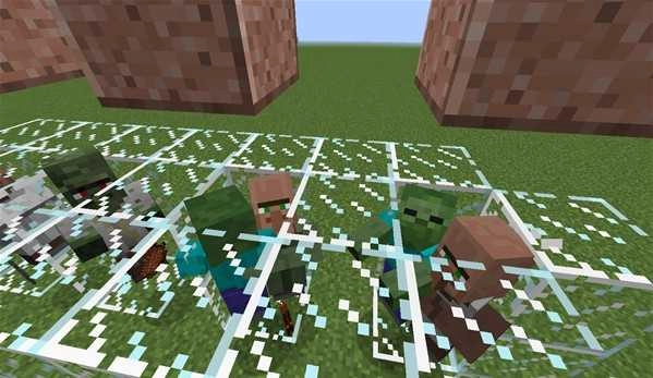 试图击碎村民家大门的僵尸,如果难度设置为困难,他们就有可能打碎木门。