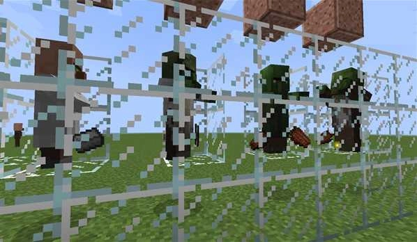 当然,这些僵尸的袭击是有原因的,只要村民丧命于他们的手中,就会有可能被转化成为僵尸村民。为了更好的说明,在这里做了个小小的装置用于观察村民与僵尸的转化。