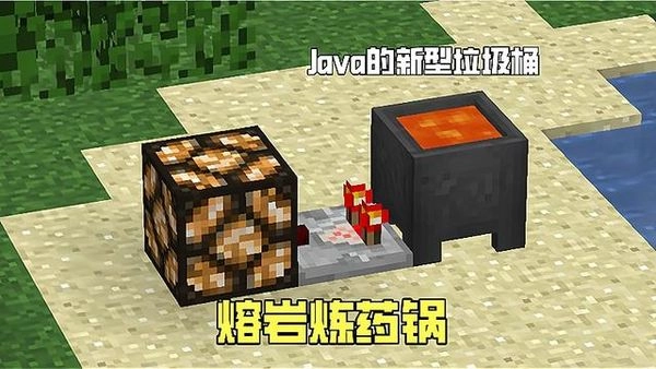 虽然在基岩版当中,熔岩炼药锅见怪不怪,但相比仙人掌垃圾桶,一个熔岩回收站不香吗?(下界合金:“你说什么?”),往锅里丢进远古残骸等不被熔岩吞噬的物品还能起到一定的隐藏作用。