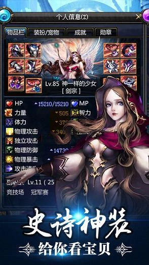 以任务引导角色成长为中心,结合副本、PVP、PVE为辅,与其他网络游戏同样具有装备与等级的改变,并拥有共500多种装备道具。
