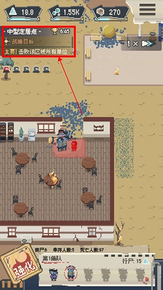 玩家在开始战斗前,可以点击右上角的三条杠图标,再点击观察地图进入观察模式,观察一下区域,先在人少的地方释放僵尸进攻。