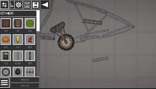 2、进入游戏如图,点击左上角菜单按钮,添加两个物品在地上;