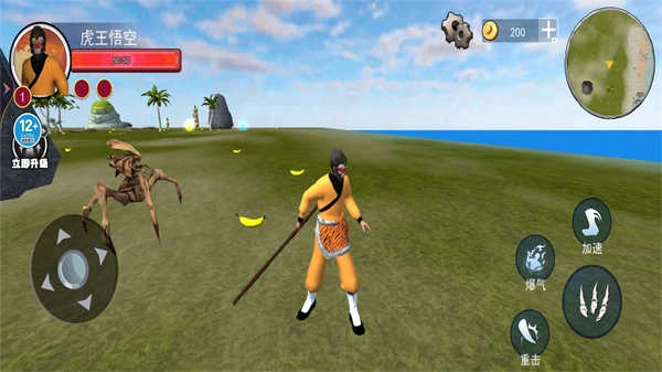 2、通过移动孙悟空去寻找食物香蕉来增加经验值,然后去挑战比自己等级小的去进行格斗完成挑战寻找下一个目标。