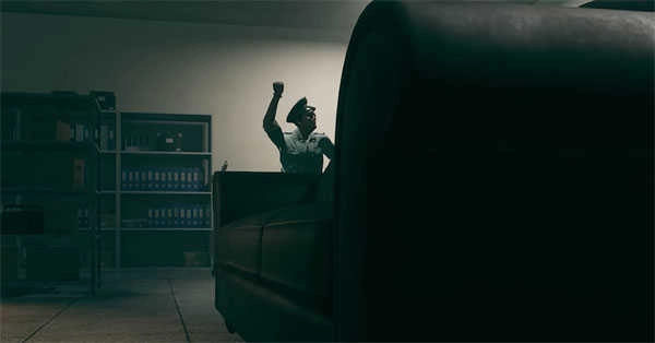 接着一个惊悚的氛围来了,教官黄忠勇打着手电出现,对话后跑出资料室乘坐电梯前往B1层。