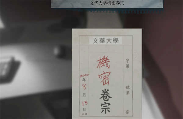 在资料室的办公桌里能获得文华大学机密卷宗,画旁边的保险柜输入0706拿到事件录像带。