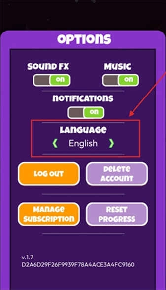 3、可以看到LANGUAGE下面的English,再去点击左右任意一侧的<>。