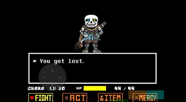 1、在本站打开Ink Sans fight手机版游戏后,进入到主页面你将会和ink Sans对话,准备好了便可以开始游戏。