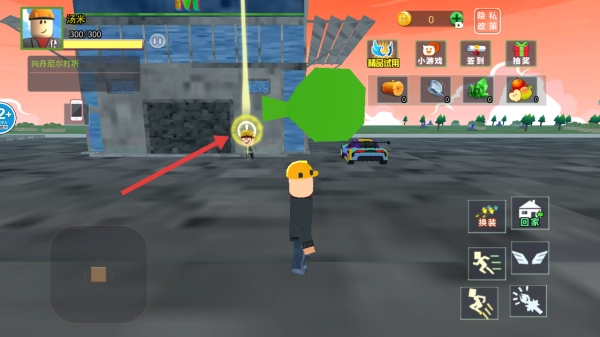 1、点击开始游戏,选择角色进入乐高城市场景后,通过操控角色移动,寻找带有光圈标识的NPC(例如建筑前的小人)来接取任务。